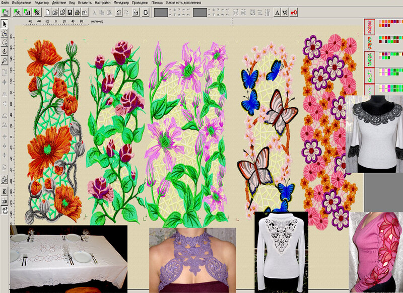 Кружево – кружевная кайма, кроше, баттенбергское – компановка, стыковка, технология вышивки.